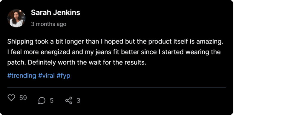 Wow, ngl I was skeptical at first but honestly this stuff works tbh. My cravings are gone and I feel so much lighter after just two weeks of using it daily. It actually works better than I expected for a natural patch.