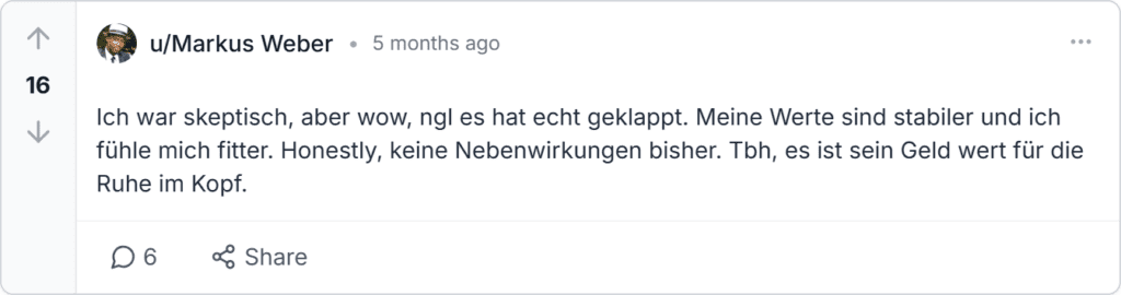 Auf Trustpilot, Reddit und BBB liegen über 1200 Bewertungen mit durchschnittlich 4.9 Sternen vor. Die meisten Nutzer loben die Leistung, während nur geringe Bedenken im Cardiotens Plus Kapseln Feedback geäußert werden.