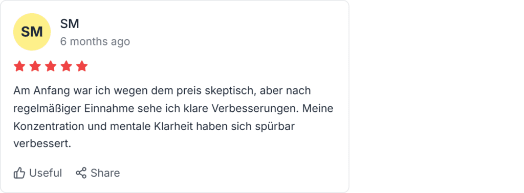 Bessere Stimmung und Selbstvertrauen: Durch klareres Denken und besseren Fokus verbessert sich auch die Motivation, wodurch viele Nutzer mehr Selbstvertrauen und eine stabilere Stimmung laut Meinungen berichten.