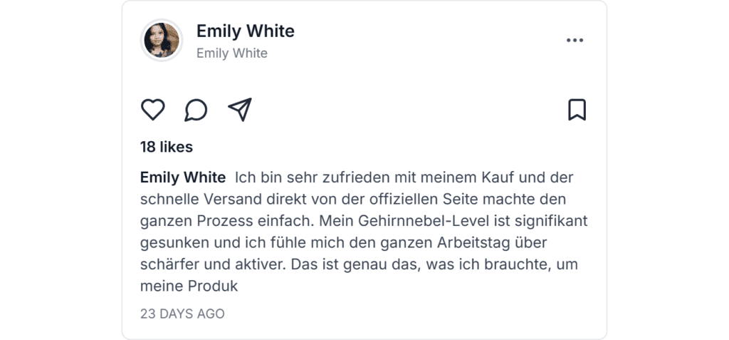 Die meisten Benutzer bemerken Veränderungen in Energie und Fokus innerhalb weniger Tage, wobei signifikante Gedächtnisverbesserungen nach zwei bis vier Wochen auftreten.