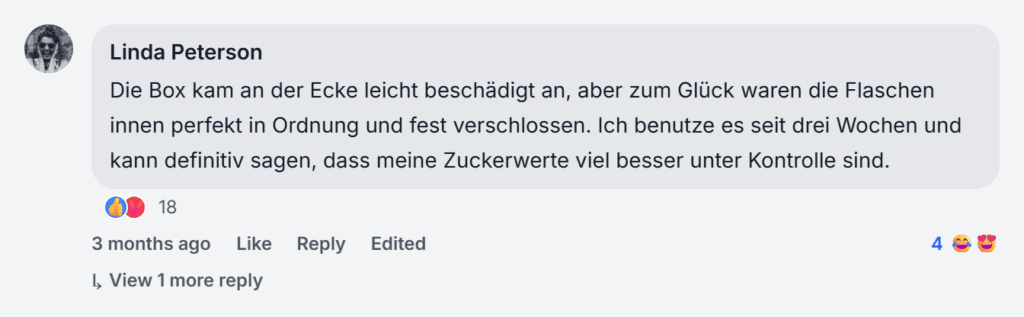 Das bedeutet aber nicht, dass es sich um Betrug handelt oder das Produkt unseriös ist. Die GlucoSana Inhaltsstoffe wie Chrompicolinat, Berberin und Curcumin sind wissenschaftlich fundiert, die Zusammensetzung entspricht modernen Sicherheitsstandards und die Herstellung erfolgt unter streng geprüften Bedingungen (GMP/FDA). Viele GlucoSana Kundenmeinungen und Erfahrungsberichte bestätigen eine positive Wirkung auf den Blutzucker, die Verbesserung der Insulinsensitivität und die Steigerung der Energie bei richtiger Anwendung und Dosierung.