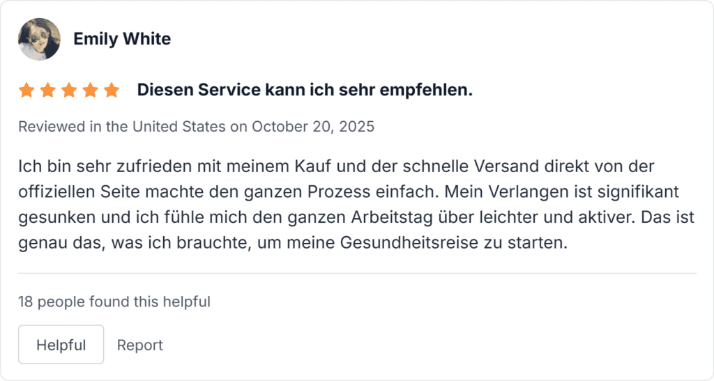 Trustpilot, Reddit und das Better Business Bureau verzeichnen über 94.000 Bewertungen mit einem Durchschnitt von 4,9 Sternen, was eine hohe weltweite Zufriedenheit widerspiegelt. Nutzer loben durchweg die stetige Leistung und effektive Glukosekontrolle, während nur vereinzelt geringfügige Bedenken im Feedback zu den GlucoSana-Kapseln geäußert werden.