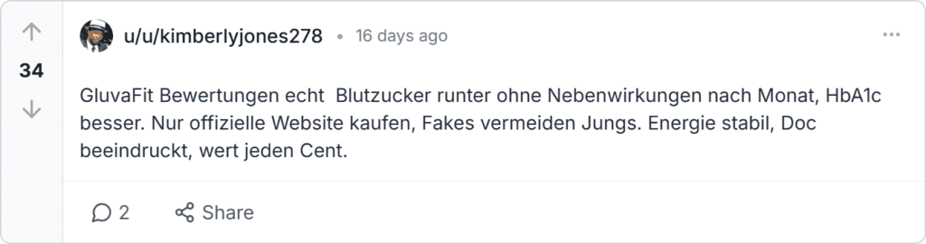 Also GluvaFit is 'n Nahrungsergänzungsmittel für gesunde Leute, die ihren Blutzucker unterstützen wollen. Verschreibungspflichtige Medis sind für richtige Krankheiten gedacht. Das eine kann das andere nich ersetzen, aber vielleicht ergänzen – aber nur mit ärztlicher Betreuung! Viele mögen's halt, weil's natürlich is und nich so viele Nebenwirkungen hat wie manche Pharma-Sachen.
