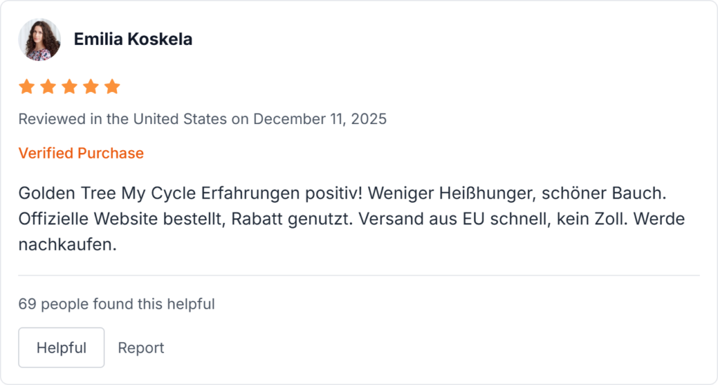Golden Tree My Cycle Erfahrungen und Rückmeldungen aus Deutschland dominieren positiv – von Trustpilot bis Amazon.de. Viele berichten von besserer Lebensqualität, trotz kleiner Versand-Hickups. Hier echte Rückmeldungen mit Beschweren und Lob.