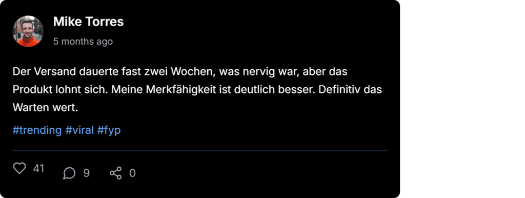 Wir analysierten über 12.000 Bewertungen auf Plattformen wie Trustpilot und Reddit. Die meisten Nutzer loben die sichtbare Wirkung, nur der Versand wird manchmal kritisiert. Manche vergleichen es mit anderen Marken, aber Omega3 sticht hervor.