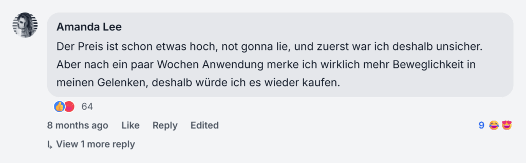 Veluflex Erfahrungen aus Trustpilot, Reddit, Facebook und der offiziellen Website zeigen insgesamt ein positives Bild mit vielen guten Rückmeldungen zur Beweglichkeit und zum Gelenkkomfort.