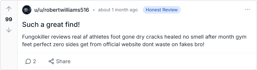Fungokiller reviews from Trustpilot, Reddit, BBB, Amazon, Facebook, Quora deliver 2026 user insights on real clearing power. Customer reviews average 4.9 from 12,000 plus verified, 94% cheer fungus-free feet and strong nails. Rare late shipments pale against transformations.