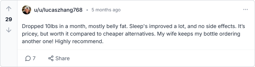 Comparison: Outperforms Orlistat (10% efficacy, GI side effects) in safety and adds sleep benefits. Beats green tea catechins DIY (modest 5% boost) with higher ROI $1.60/day yields sustained 10-15lbs loss in 90 days.