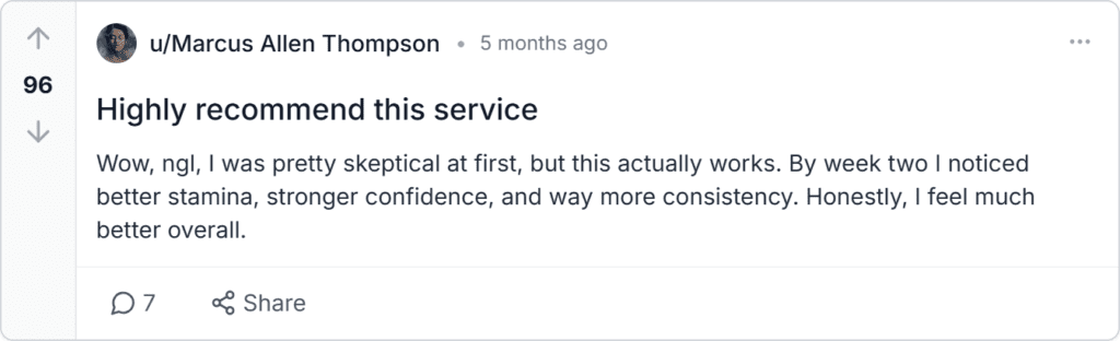 Timeline of results: Days one to four may bring mild boosts in energy and mood. By weeks two to four, users often notice better responsiveness, stamina, and confidence.