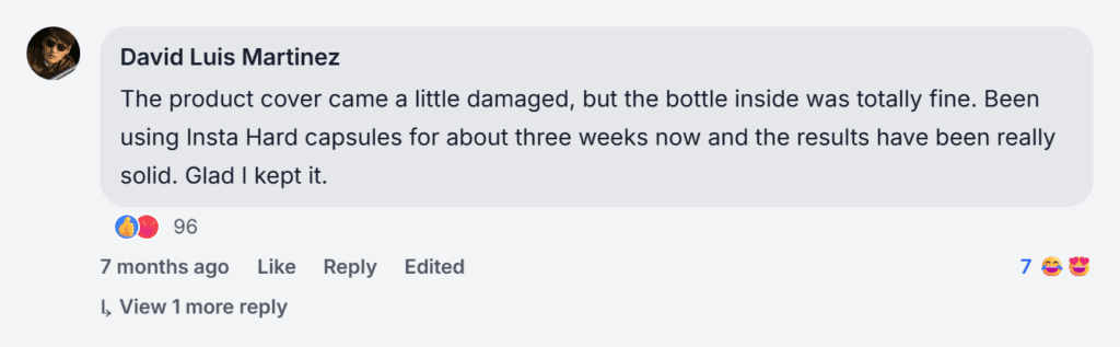 Based on consumer feedback across verified sources, most users praise steady results, while only minor concerns appear in InstaHard testimonials and capsules feedback about shipping timeframes, packaging, or price.