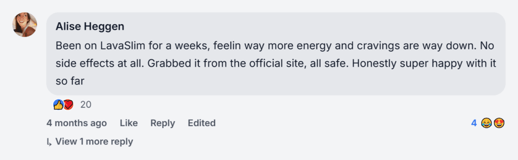 Order came in 7 days, feelin way leaner already no jitters at all sorted out a lil shippin delay super quick, real endurance boost goin strong. LavaSlim testimonials hit the nail on head, totally worth every penny.