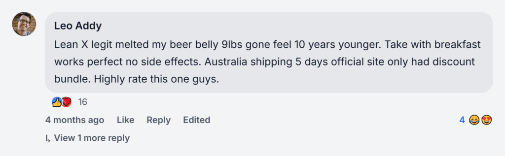 Lean X reviews got me trying this after stallin at 95k now weight is loss. Appetite gone workouts easier sleep better. Small delay first order but support fixed quick. Real deal from official Lean X website dont buy cheap copies.