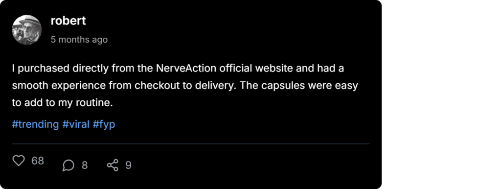 Many NerveAction testimonials describe reduced tingling, steadier comfort, and better mobility after several weeks of use. Results depend on consistency, lifestyle habits, and the starting level of discomfort.