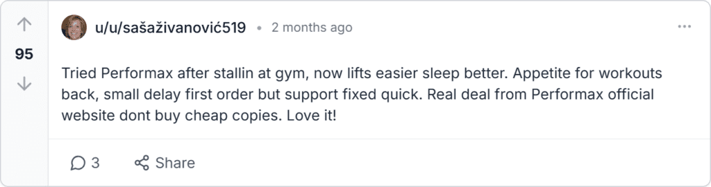 Performax reviews got me trying this after low T symptoms, energy up strength noticeable. Workouts easier no crash, delivery to germany was smooth. Worth every penny official site only.