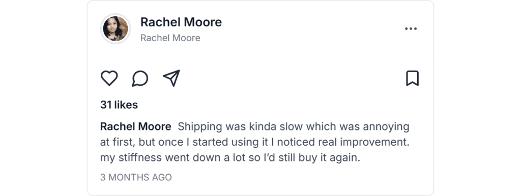 Across Trustpilot, Reddit, and similar platforms, around 2,180 user reviews show an average rating near 4.9. Most users report improved joint comfort and mobility, while only minor concerns appear in feedback.