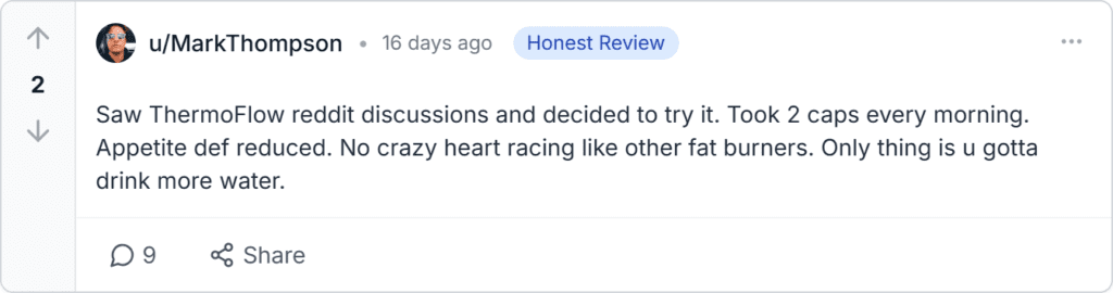 Many users notice appetite changes within one week, with visible ThermoFlow results after 3 to 4 weeks.