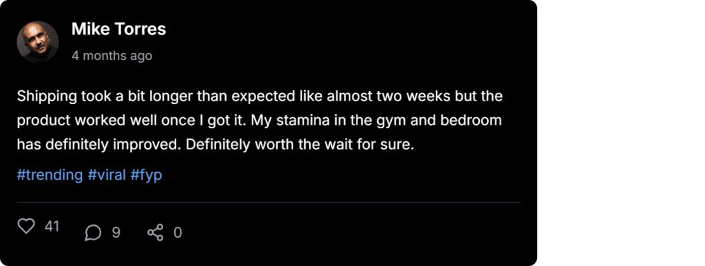 We analyzed platforms like Trustpilot, Reddit, and the BBB, finding over 12,000 reviews with an average rating of 4.9 stars. Based on Erectonin consumer reports across these platforms, most users praise the performance results with only minor concerns in testimonials and Erectonin capsule feedback regarding shipping times.