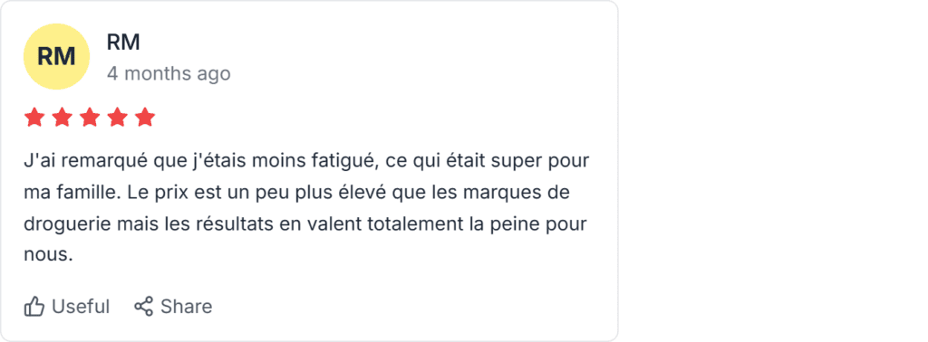 Honnêtement j’étais sceptique au début mais wow ça marche vraiment ! Mes fringales ont presque disparu après deux semaines. La différence d’énergie est énorme aussi. Je recommande vivement à tous ceux qui luttent avec leurs objectifs de perte de poids.