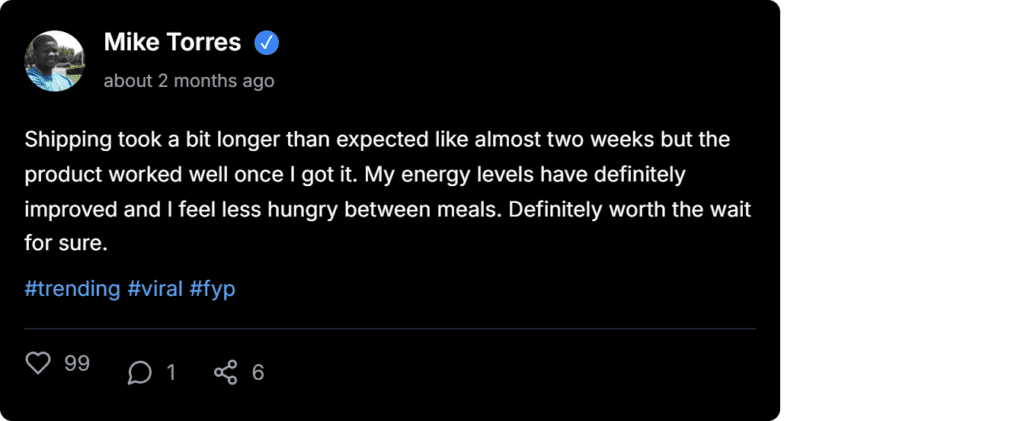 Honestly I was skeptical at first but wow ngl this stuff actually works! My cravings are almost gone after just two weeks. Tbh the difference in my energy is huge too. Highly recommend for anyone struggling with weight loss goals.