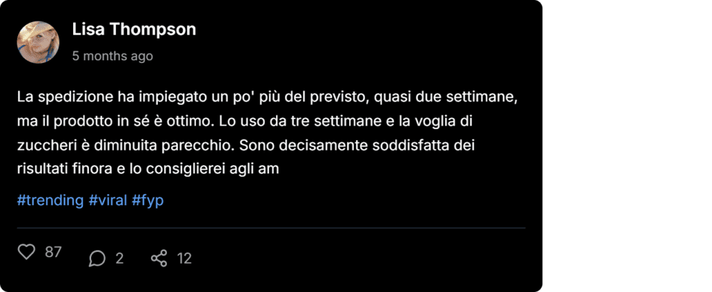Sì, funziona: molti utenti riportano livelli di glucosio più stabili e maggiore energia grazie agli ingredienti naturali studiati clinicamente.