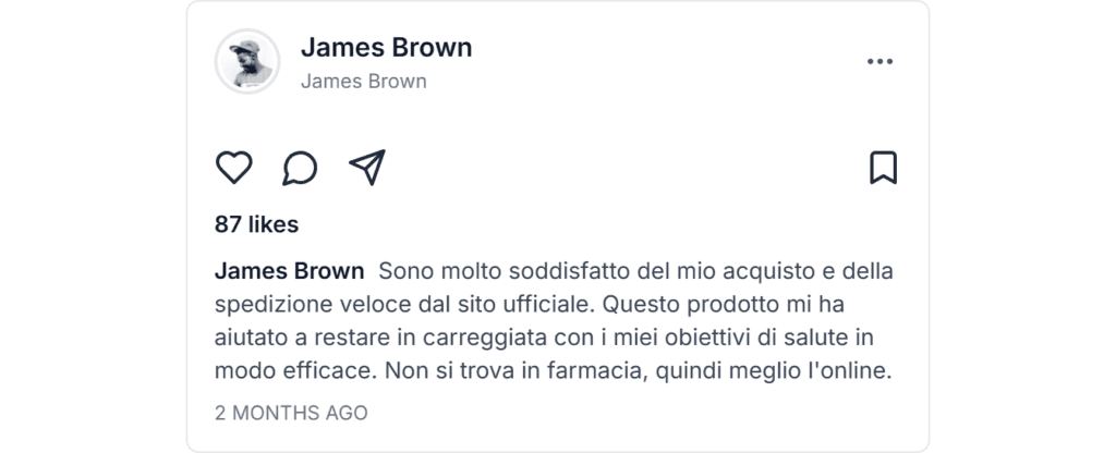 Il prodotto è pensato per adulti dai 30 ai 70 anni con ritmi frenetici, che vogliono mantenere la salute metabolica senza regimi complicati. Aiuta a gestire glicemia e pressione in modo efficace, sostenendo energia e fiducia senza diete restrittive. La produzione avviene in strutture certificate GMP, registrate FDA e conformi ISO 9001. Non è una truffa, ma un prodotto reale ed onesto. Molti ne parlano bene nelle loro opinioni, anche se non si trova in farmacia. Controlla sempre le Fonti ufficiali prima dell’acquisto.