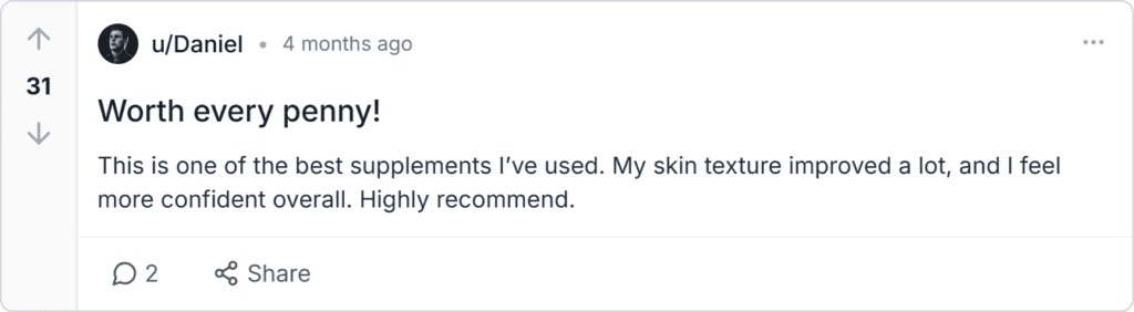 A supplement’s value depends on real results. We reviewed Kollagen Peptides feedback from Reddit, Quora, Trustpilot, and Facebook. Most users report visible benefits and easy use, with a few noting slower results or high demand.